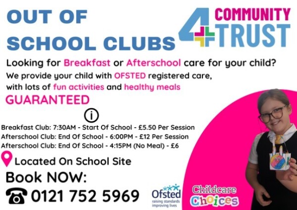 Our wrap around care is delivered by 4 Community Trust, who run many breakfast and after school clubs in the local area.